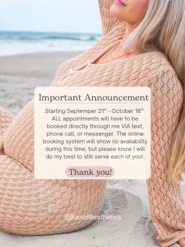 Please contact me personally for ANY and ALL beauty services needed during the time my booking link is closed, as I will be trying my absolute BEST to keep performing services until I go into labor!